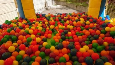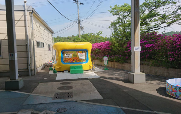 例年の5月に比べると、あまり風も無く真夏日と言われるくらいのとてもとても暑い一日となりましたが、ふわふわ遊具を設置した場所は会社のビルがちょうど直射日光を防いでくれており、お子様たちが快適に遊ぶことが出来るぴったりの場所となりました。毎年開催しているご家族イベントの中に初めてふわふわ遊具を設置され、ご担当者様の中では大丈夫かなぁとの不安もあったようなのですが、とても満足していただけて嬉しく思います。たくさんあるボールをスタッフが片付けていると、子どもたちが集まってきて皆で手伝ってくれて、思わず心温められてしまいました。
