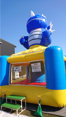 先日はありがとうございました。 設置も撤収もおひとりで作業をしていただき、本当に助かりました! 当日はあいにくのお天気で野外イベントが中止となってしまい残念でしたが、 その分、ふわふわエアランドを館内で開催できたことは本当に良かったと思っています。 諦めていたキャラクターの部分も天井までちょうどふくらませることができて感動しました! 結果、式典のため休止した時間を除く3時間半ほどの間に127名の子供たちに体験してもらうことができました。 晴れた日の芝生広場で開催できれば、もっとたくさんの子供たちに楽しんでいただけたことでしょう。 また機会があればご依頼させていただくこともあるかと存じます。 その時はどうぞよろしくお願い申し上げます。
