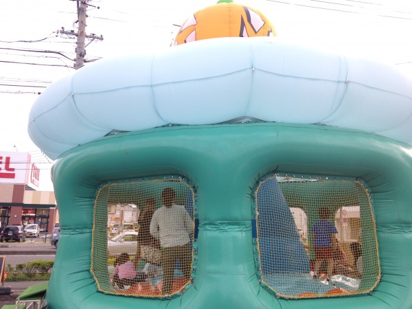 10月半ばということで、暑くもなく寒くもなく、ふわふわで遊ぶには持って来いの気候でした。混雑しなかったこともあり、中には30分以上遊ぶ子もいたり、お子さんを遊ばせている間にお母さんはカフェでゆっくり、なんて光景も目にすることができました。レンタルのご依頼をくださった自動車ディーラーのスタッフのみなさんも子ども達の楽しげな姿に笑顔を浮かべていらっしゃいました。