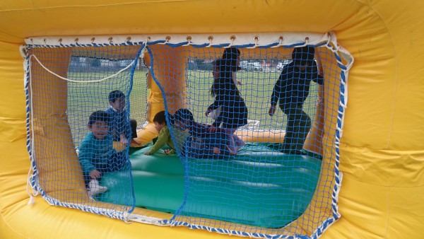 地域の交流促進の意味合いもあるイベントで、自治センターを会場に開催されました。子ども達の遊び場として会場に設置されたいとのことでした。