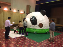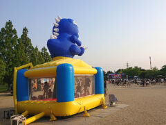 先日はありがとうございました。 設置も撤収もおひとりで作業をしていただき、本当に助かりました! 当日はあいにくのお天気で野外イベントが中止となってしまい残念でしたが、 その分、ふわふわエアランドを館内で開催できたことは本当に良かったと思っています。 諦めていたキャラクターの部分も天井までちょうどふくらませることができて感動しました! 結果、式典のため休止した時間を除く3時間半ほどの間に127名の子供たちに体験してもらうことができました。 晴れた日の芝生広場で開催できれば、もっとたくさんの子供たちに楽しんでいただけたことでしょう。 また機会があればご依頼させていただくこともあるかと存じます。 その時はどうぞよろしくお願い申し上げます。