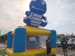 ふわふわ遊具を設置する駐車場のスペースの関係からレンタルいただいたのは「エアランドミニ」。過去2回のイベントでもレンタルいただいたふわふわで、子ども達に人気だったことに加えてふわふわ内部の様子も視認しやすい構造なので運営のしやすさからスタッフさんから好評だったこともあり、今回3回目のレンタルとなりました。