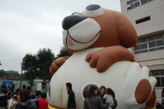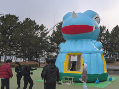 先日はありがとうございました。 設置も撤収もおひとりで作業をしていただき、本当に助かりました! 当日はあいにくのお天気で野外イベントが中止となってしまい残念でしたが、 その分、ふわふわエアランドを館内で開催できたことは本当に良かったと思っています。 諦めていたキャラクターの部分も天井までちょうどふくらませることができて感動しました! 結果、式典のため休止した時間を除く3時間半ほどの間に127名の子供たちに体験してもらうことができました。 晴れた日の芝生広場で開催できれば、もっとたくさんの子供たちに楽しんでいただけたことでしょう。 また機会があればご依頼させていただくこともあるかと存じます。 その時はどうぞよろしくお願い申し上げます。