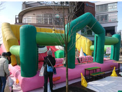 工作教室などの企画の客寄せとしてふわふわを設置されたいというご依頼で、弊社でも上位のレンタル数を誇る「エアランドミニ」をレンタルしました。