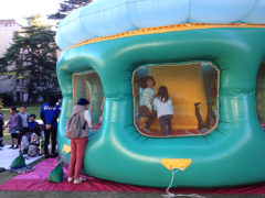茨城県日立市にある大学より、学祭のキッズ向け企画としてふわふわをレンタルして設置したいとのお問い合わせをいただきました。2日間の学祭のうち、2日目のみ一般の方も来ていただけるように開放するため、来場されたお子様にも楽しんでもらえるようにふわふわを設置したいとのことでした。