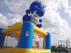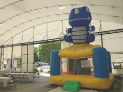 このご依頼でレンタルいただいたのは「エアランドミニ」というふわふわ。約10名のお子様が収容可能で、中規模イベントで活躍しているふわふわです。担当者様からは6月に開催ということで暑さや熱中症の心配があったそうですが、エアランドミニは支柱部分以外の側面はネットになっており、ふわふわ内は風通しがいい構造になっていますので熱中症のリスクを軽減できるようになっていたのもレンタルの決め手になったとのことでした。