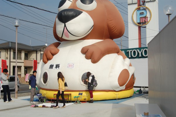 できるだけ道路寄りにインパクトのあるふわふわを設置して、通行中の方に「何だあれ!」と注目してもらいましょう。車内の子供が「あそこに行きたい!」となればもうこちらの勝ちです!